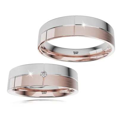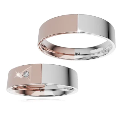 Kolekcia svadobných obrúčok „COLOUR“ vám vnesie do života ten správny pozitívny podtón. Ak ste otvorení experimentu, chcete upútať netradičnosťou a špecifickým dizajnom, staňte sa majiteľom týchto skvostov. Kombinácia dvojfarebného zlata s osadenými kamienkami vytvára dokonalý dizajn plný sviežosti.