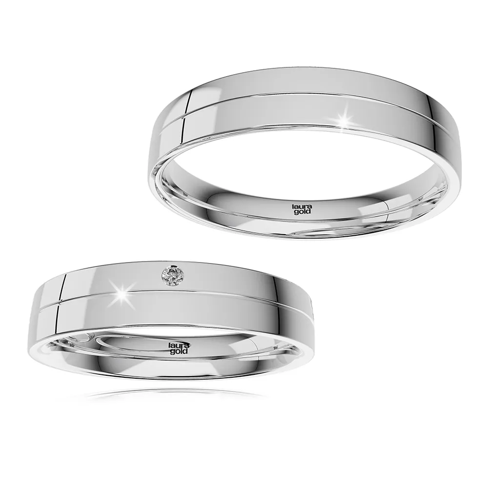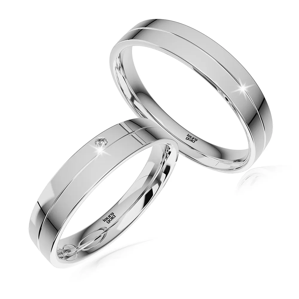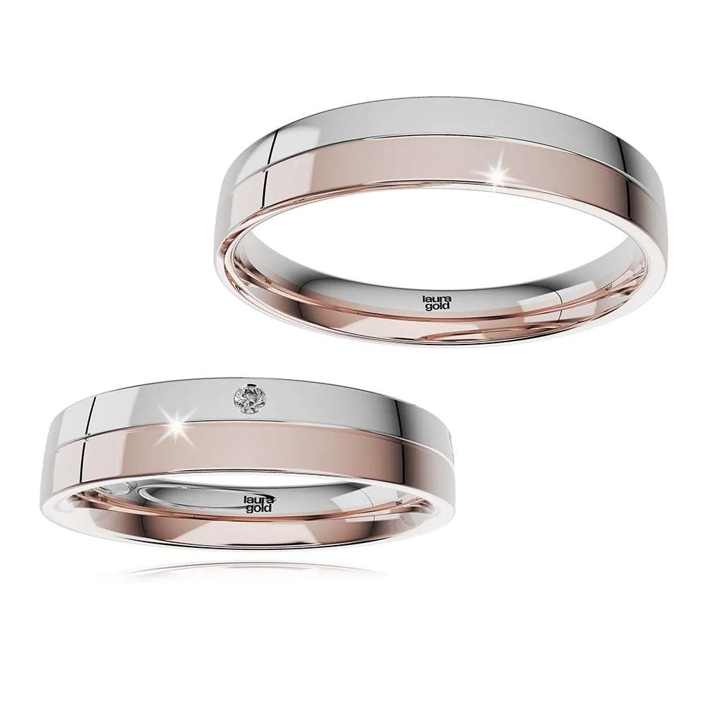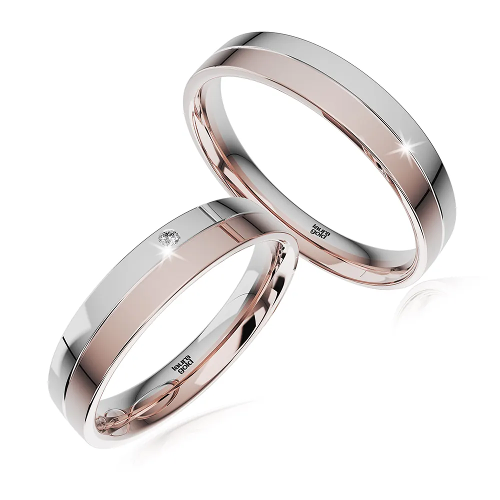 Kombinované obrúčky zo žltého a bieleho zlata z kolekcie Colour. Žltý prúžok s drobným matovaním , biely s vysokým leskom. Dámsku obrúčku sme ozdobili vložením kameňa do bieleho zlata . Ak si chcete dopriať luxus osadíme Vám pravý , nádherne sa blyštiaci sa briliant.