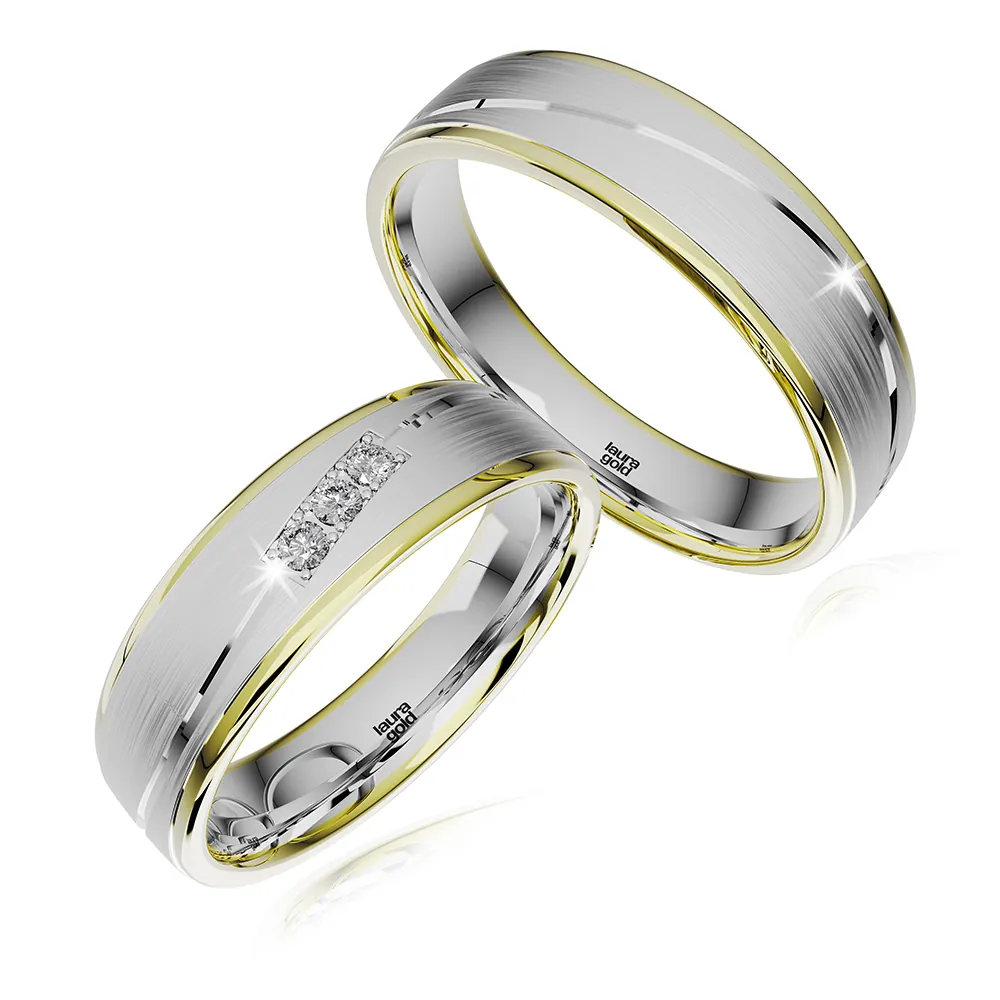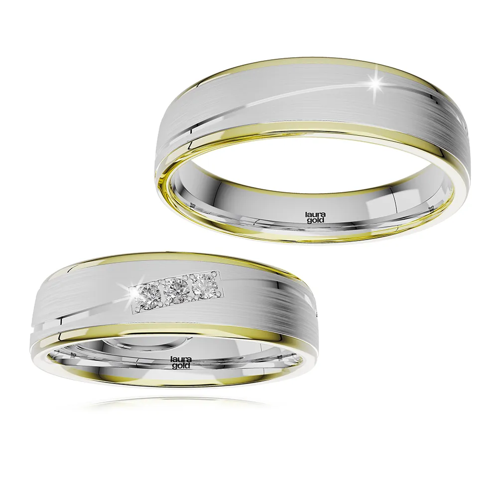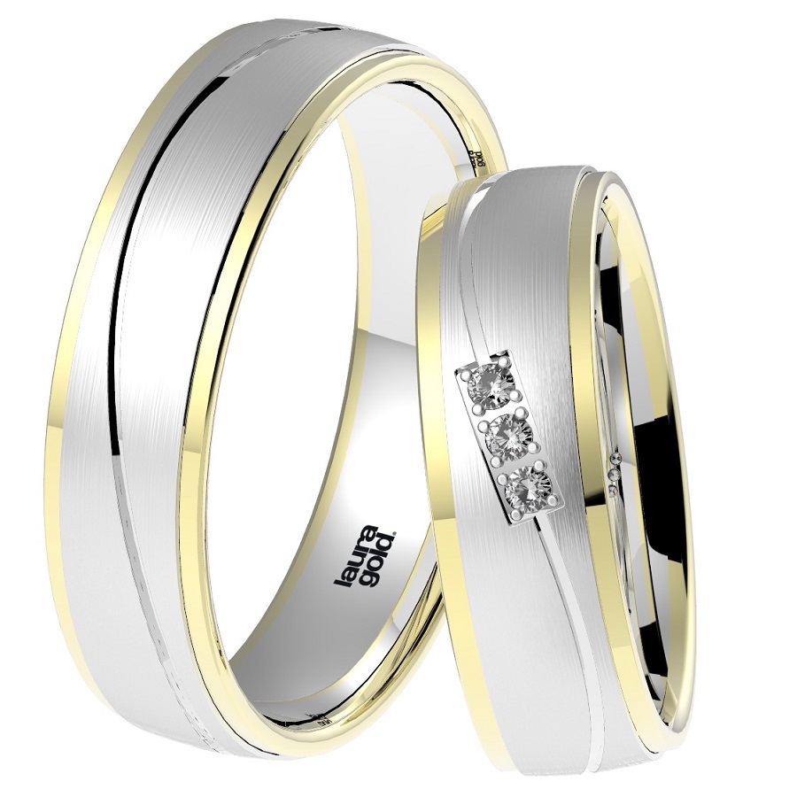 Jemný model z kolekcie Colour . Kombinácia lesklých, žltých okrajov a matovaného širšieho stredu v bielej farbe zlata. Jednoduchší pánsky prsteň je krásne doplnený dámskym s osadenými zirkónmi , alebo pravými briliantami . Zvoľte si sami farebnú kombináciu .
