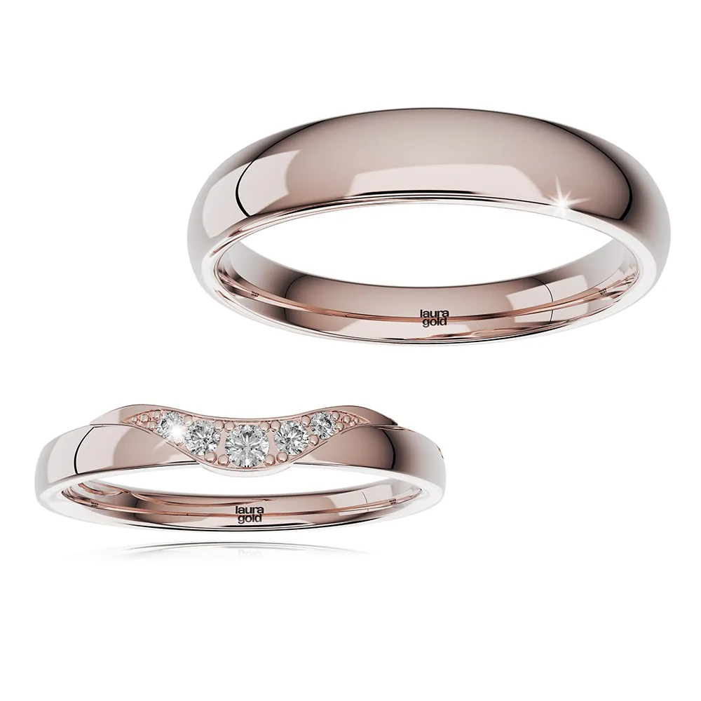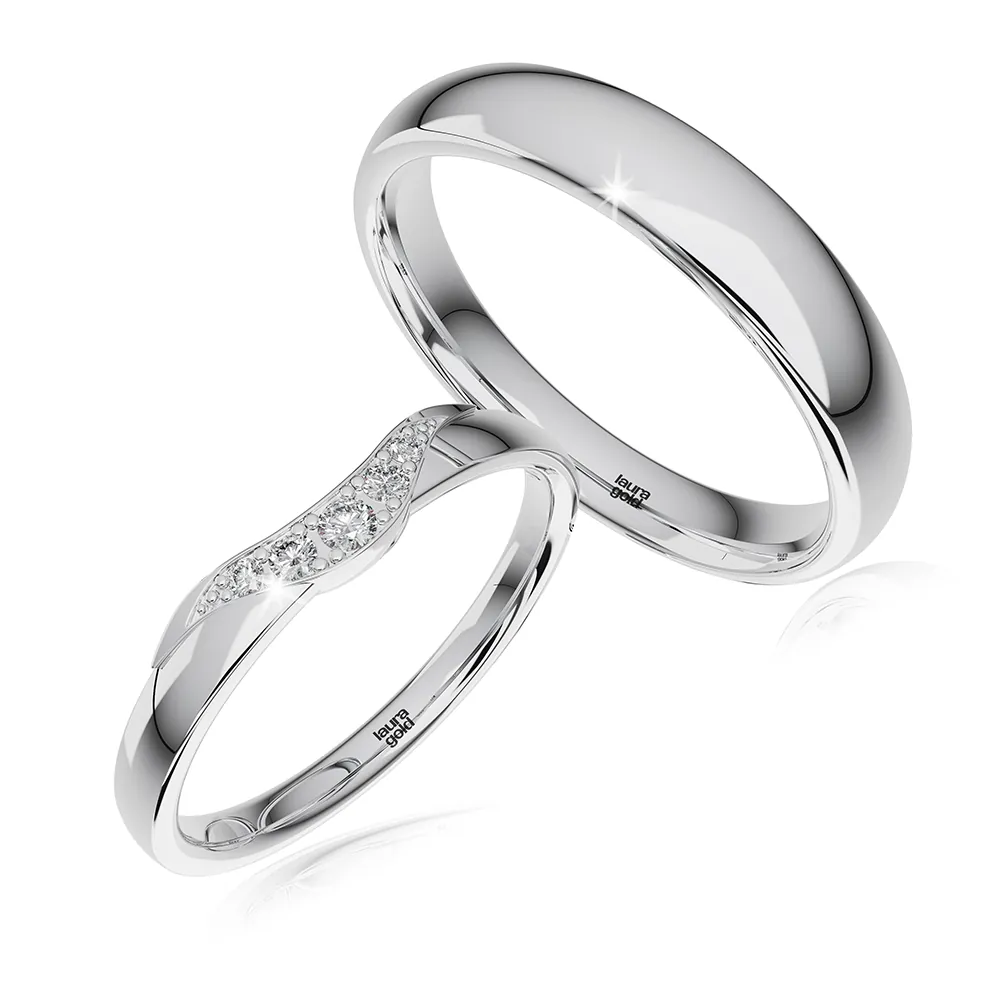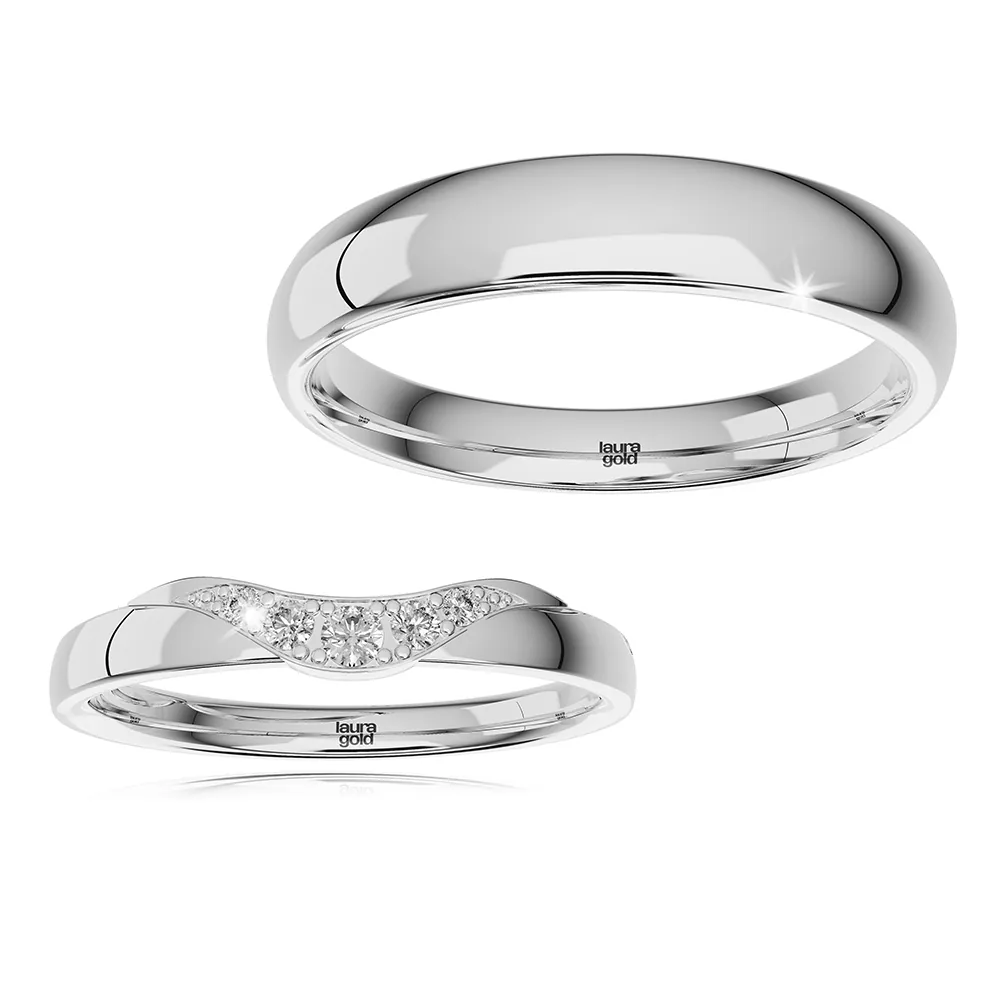 Elegantné obrúčky sú zosobnením elegancie a jedinečnosti, kde jemná líniová krivka a žiarivé kamene vytvárajú dokonalú harmóniu. Každý detail symbolizuje lásku, ktorá sa prispôsobí každému okamihu spoločného života a navždy žiari.