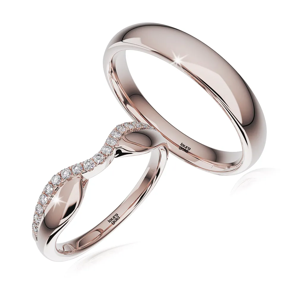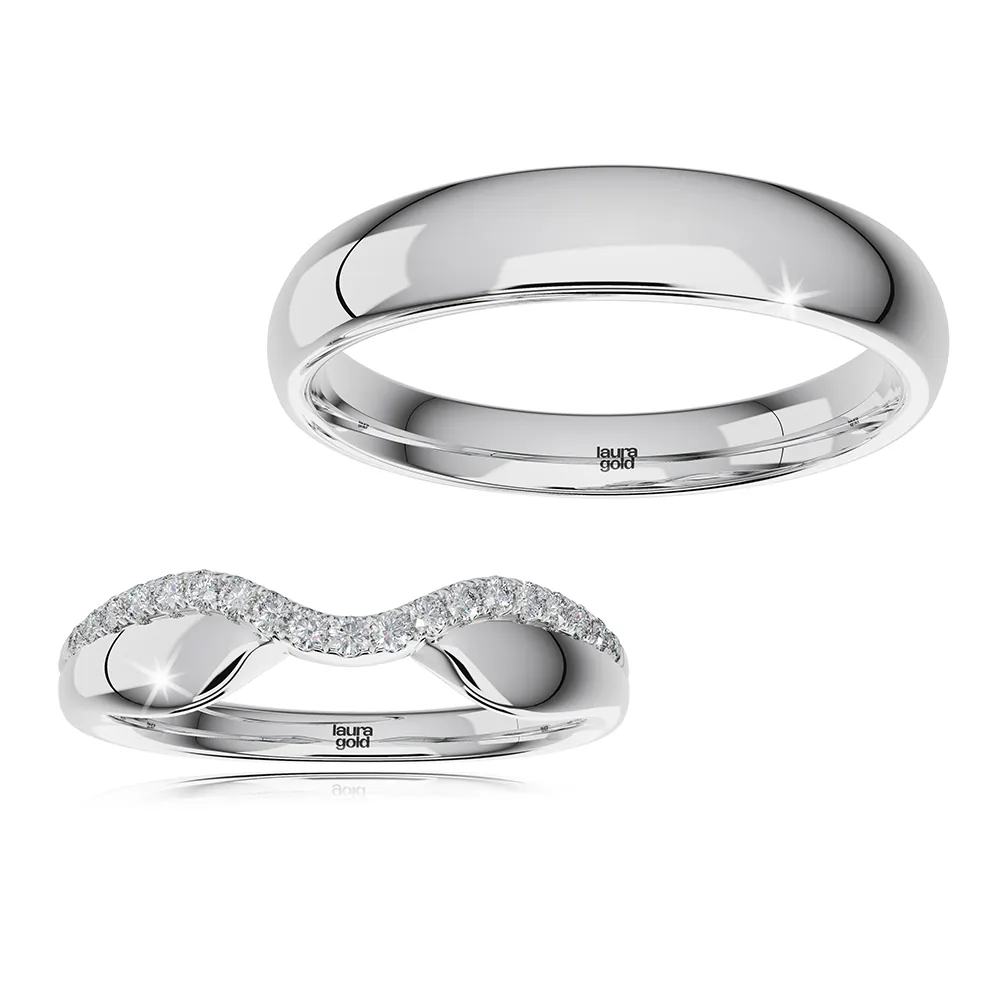 Dámska obrúčka je navrhnutá tak, aby ju bolo možné nosiť so zásnubným prsteňom, čím vytvára harmonický a štýlový vzhľad.