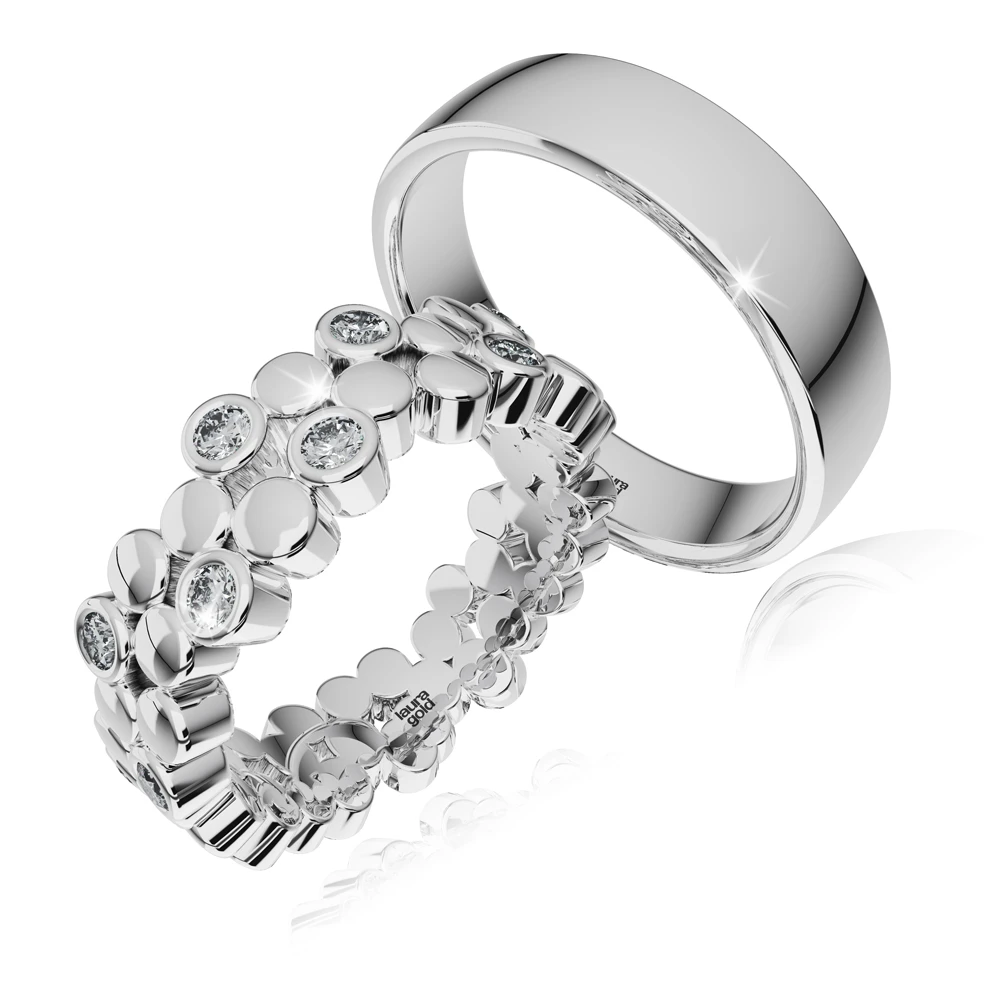 Kolekcia obrúčok s romantickým gravírovaním.