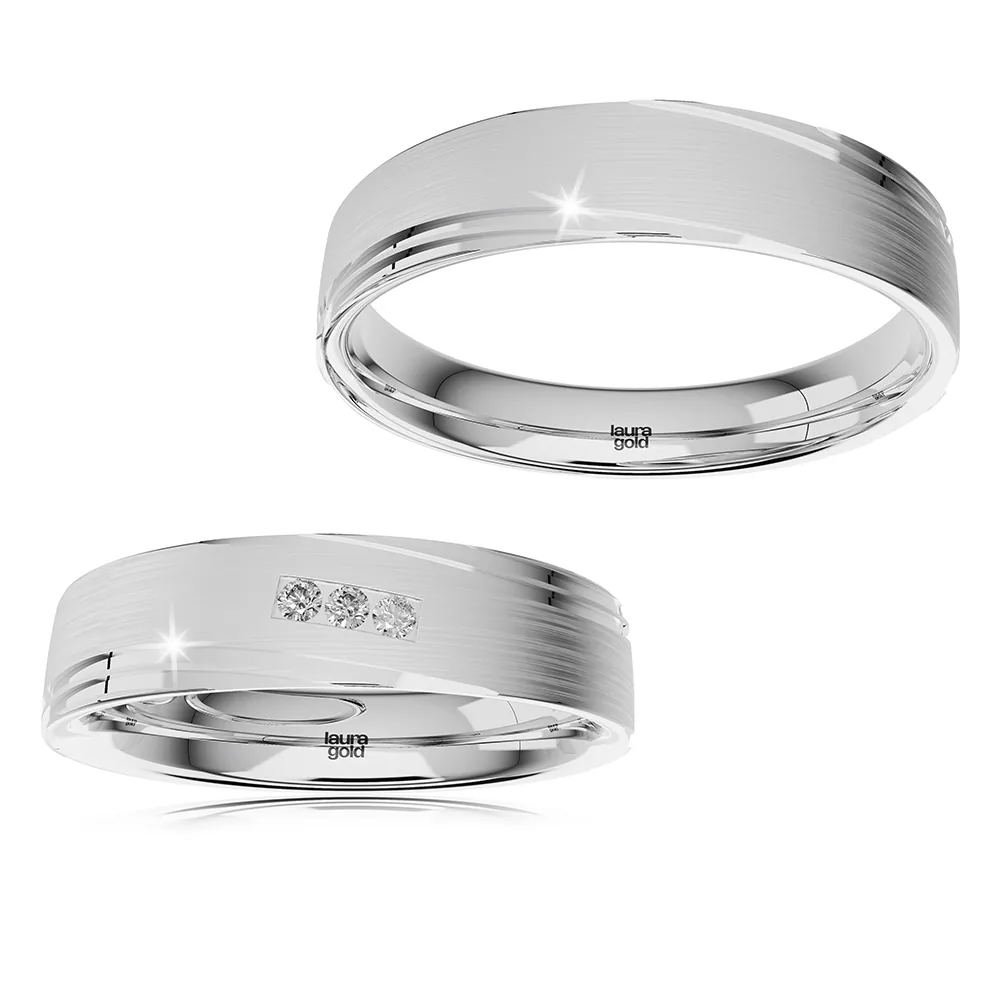 Štýlové obrúčky z bieleho zlata sú vyrobené spojením dvoch technológií matovania a vysokého lesku. Vsádzame na kvalitu, presnosť, luxus, komfort. Toto všetko sme vložili do našej práce. A toto spojenie Vám ponúkame pre Váš veľký deň. Dámska obrúčka je ozdobená krásnymi trblietavými zirkónmi s možnosťou výmeny za pravý briliant. Urobte svoj deň výnimočným. Urobte si ho výnimočným s nami.