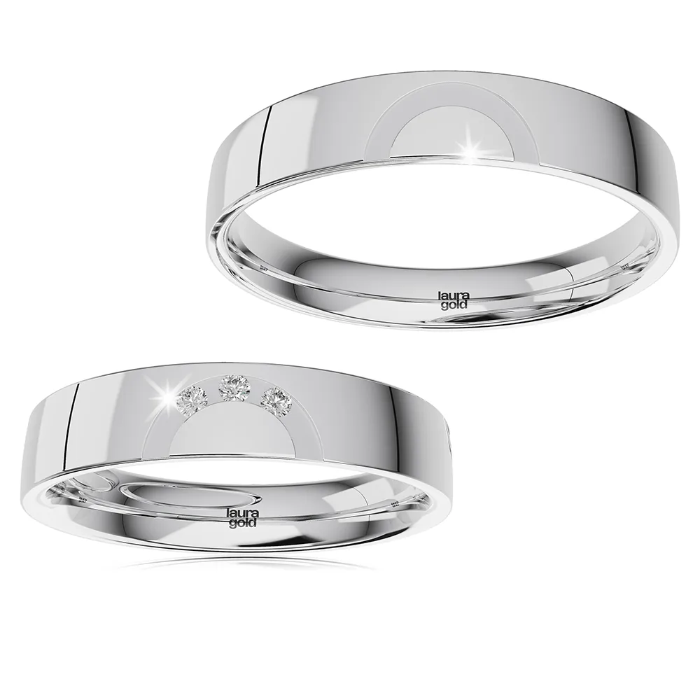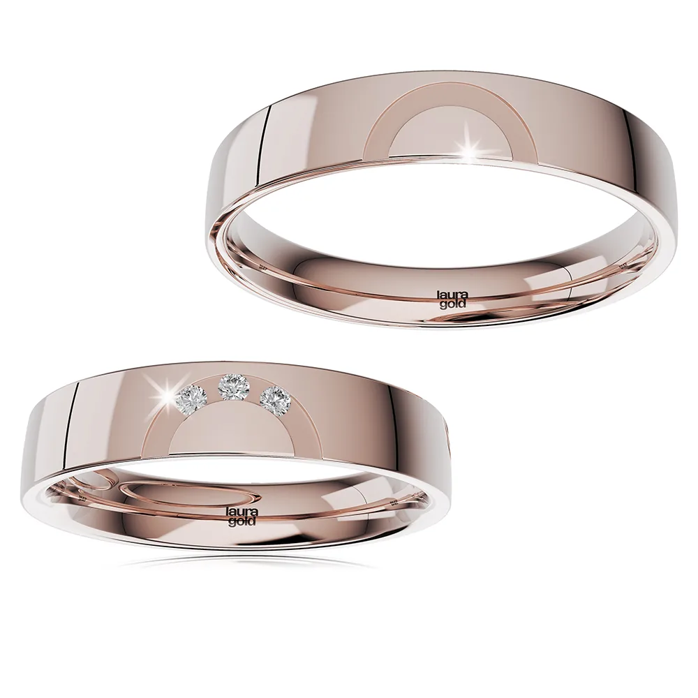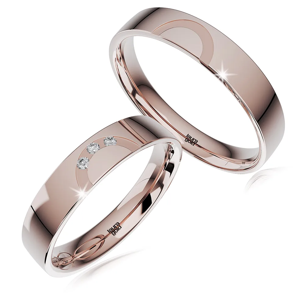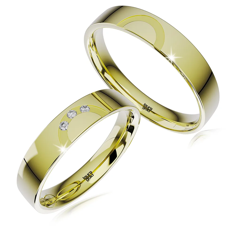 Krásny model z kolekcie Light + . Hladký leštený povrch s dizajnovým polkruhom v žltom zlate púta pozornosť. Do dámskej obrúčky sme naviac osadili do polkruhu tri zirkóny , ktoré vám na želanie vymeníme za certifikované brilianty. Obrúčky vyrábame aj v bielom, alebo červenom zlate.