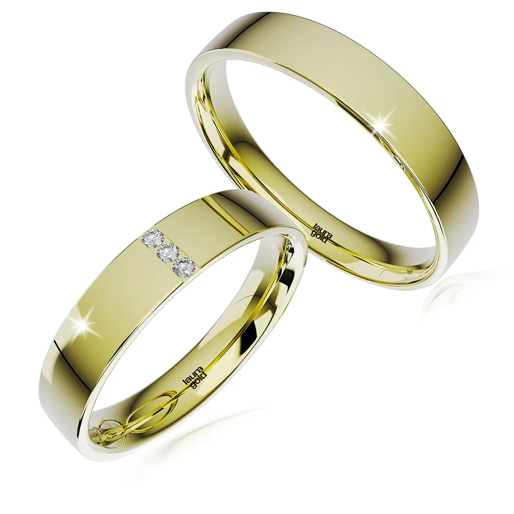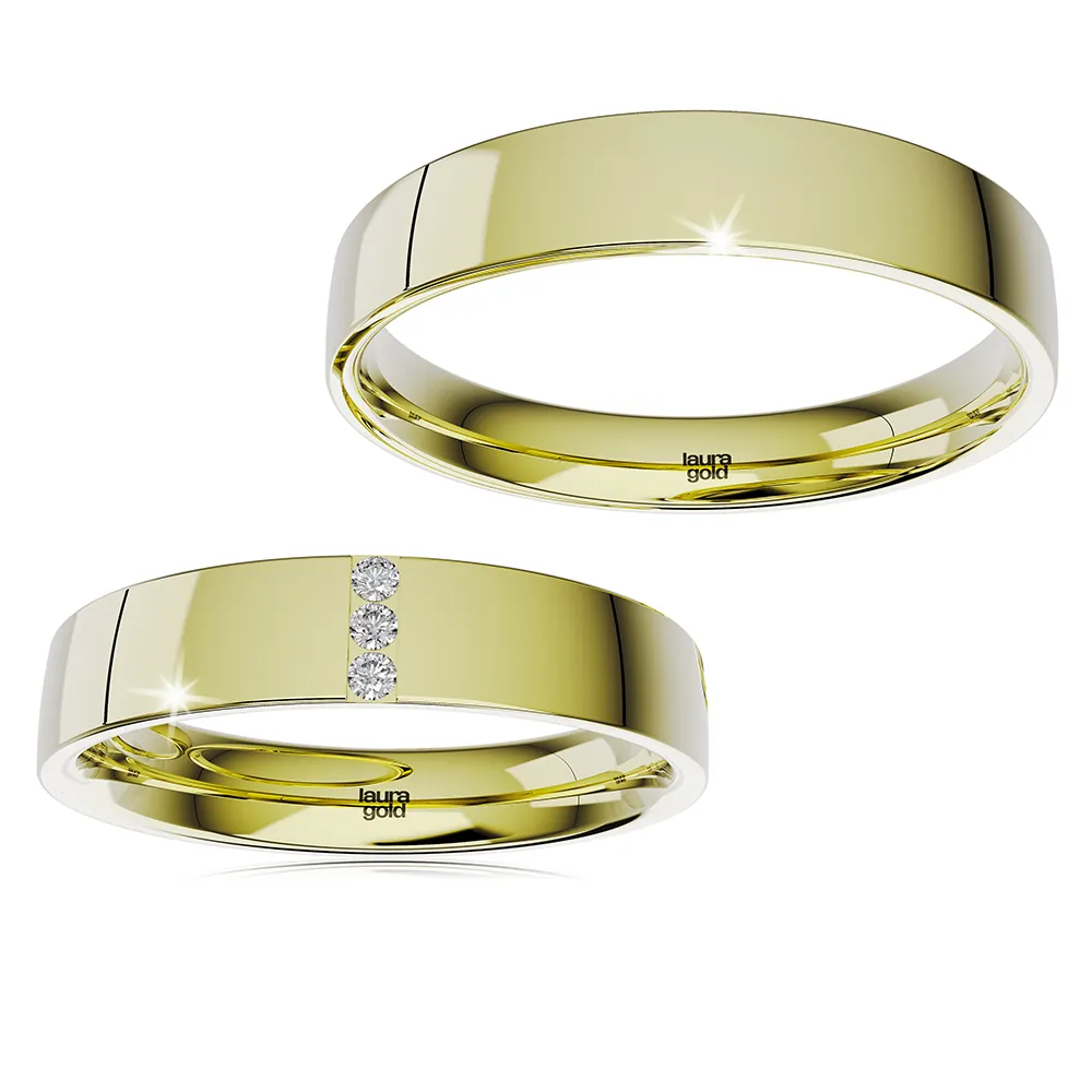 Jemné svadobné obrúčky z kolekcie Light +. Vyrobené z bieleho zlata sú klasikou, na ktorú sa nezabúda. Vysoký lesk týchto obrúčok upúta pozornosť pri každom pohybe. Pánska obrúčka hladká bez vzoru , do dámskej obrúčky sme vložili tri zirkóny , ktoré vám na požiadanie vymeníme za pravé brilianty . Vyberte si farbu zlata bielu , žltú alebo červenú.