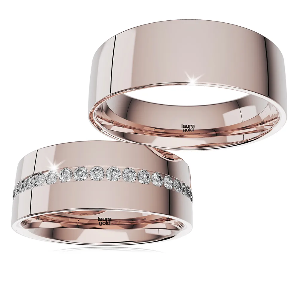Exkluzívne až 7 mm široké sú tieto svadobné obrúčky z našej kolekcie Exclusive. Ich lesklý povrch a šírka púta pozornosť. Do dámskej obrúčky sme po celom obvode osadili trblietavé kamene zirkónu, alebo ak bude obrúčka Vaším luxusným doplnkom pravé, nádherne brúsené brilianty. Obrúčky ponúkame aj v žltom , alebo v červenom zlate.
