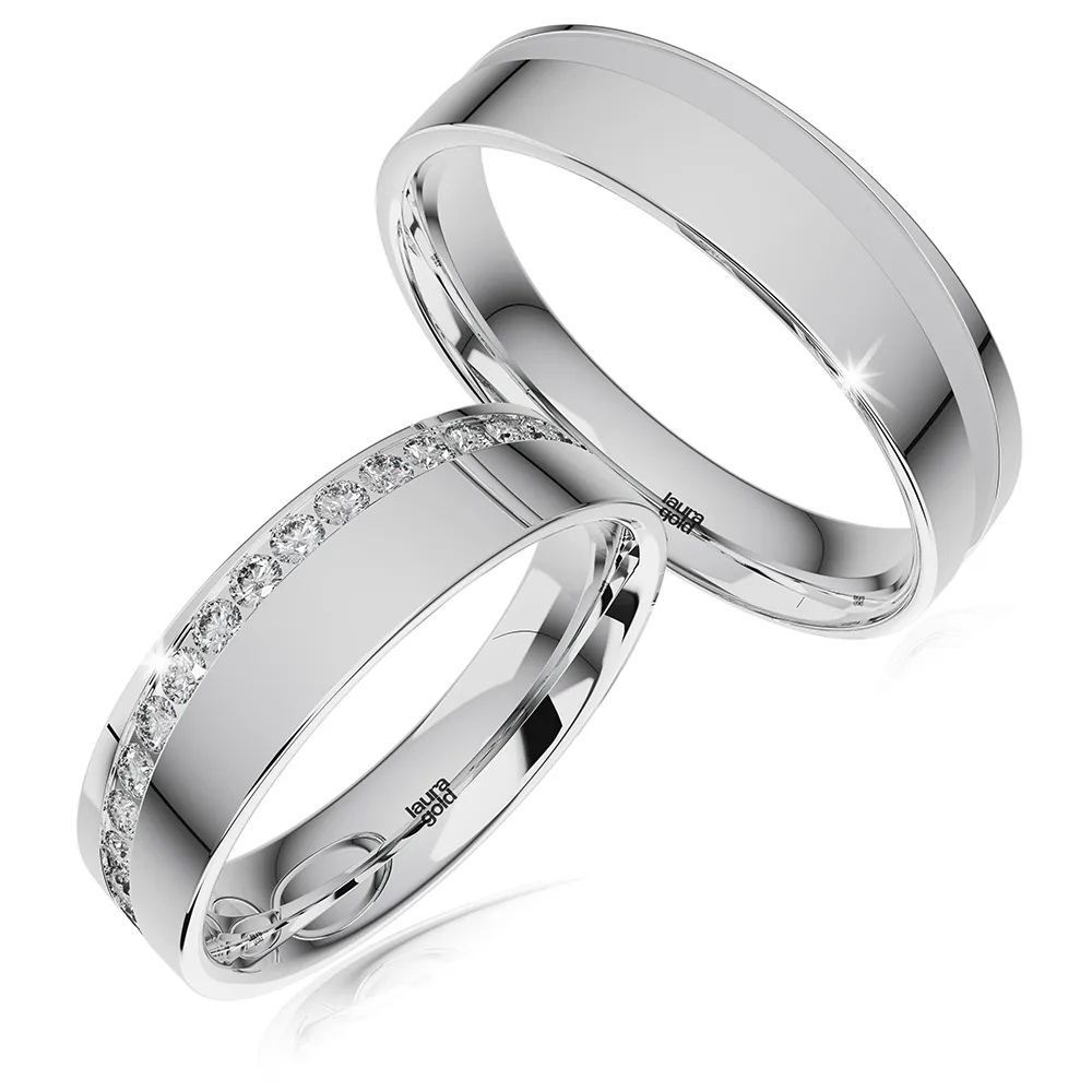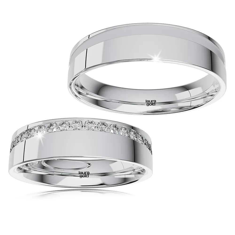 Krásny model z kolekcie White . Obrúčky zdobené jemnou ryhou vynúcou sa dookola. V dámskej obrúčke sme celú ryhu osadili trblietavými kameňmi zirkónu , alebo na vyžiadanie certifikovanými diamantami. Vysoký lesk a kamene odrážajúce svetlo budú pútať pozornosť.