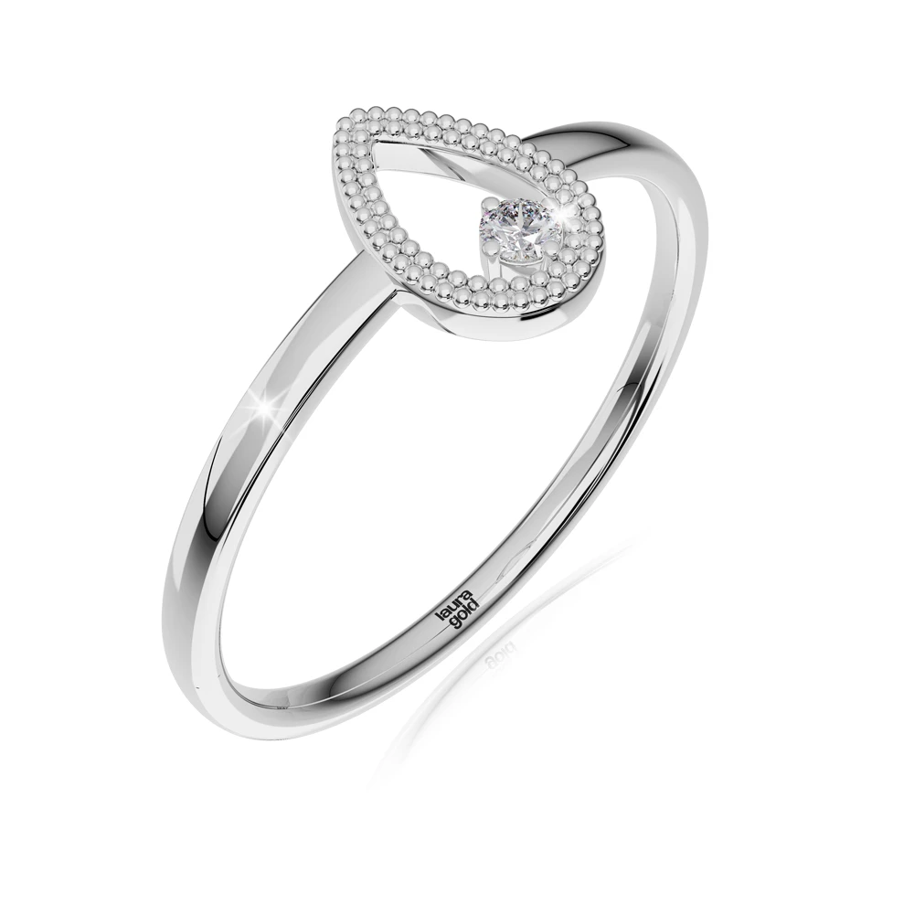 Tento zásnubný prsteň z bieleho zlata vyžaruje eleganciu a jedinečnosť. Drobné detaily v tvare kvapky a jemne vsadený drahokam vytvárajú dojem vzdušnej ľahkosti. Je to šperk, ktorý vás očarí svojou krásou a stane sa vašou neoddeliteľnou súčasťou.