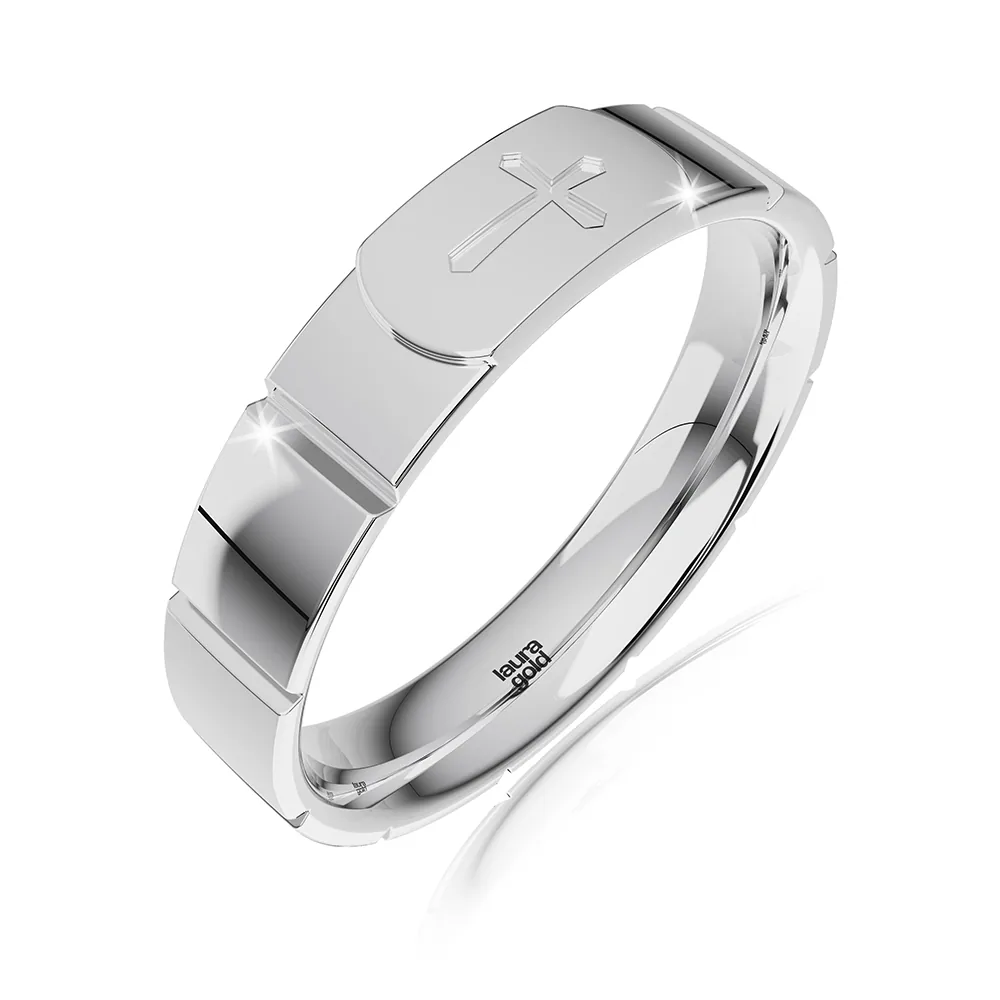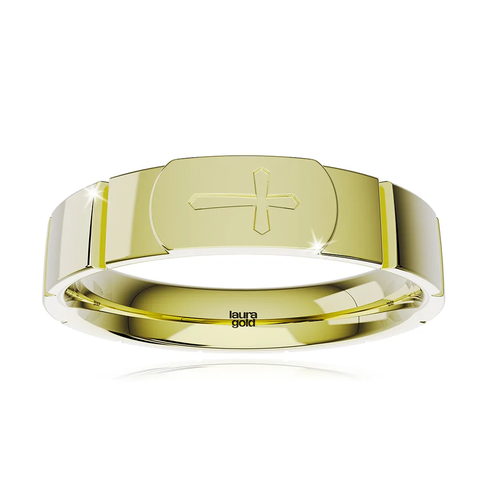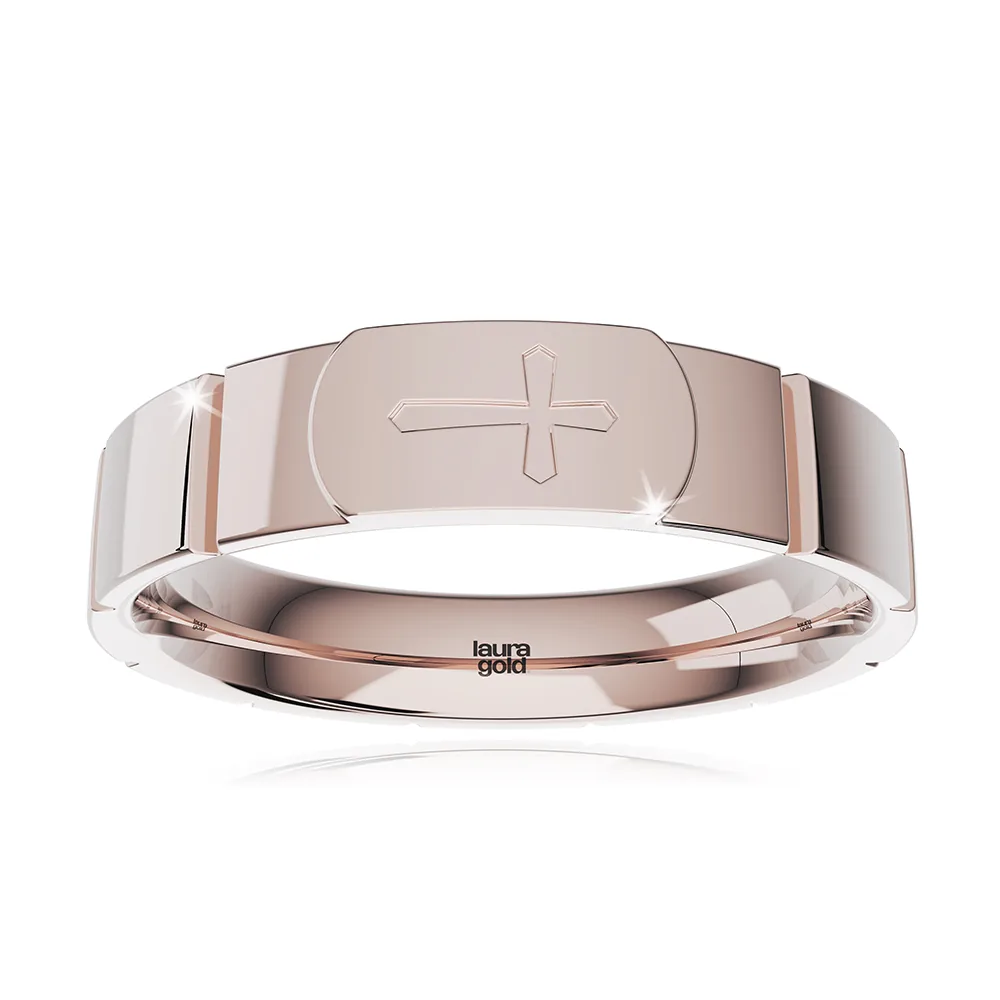 Ružencový prsteň pôsobí ako tichý lúč svetla – jednoduchý, čistý a plný symboliky, ktorá hreje pri srdci. Hladký povrch a jemne vygravírovaný kríž vytvárajú dojem pokornej elegancie, ktorá sa prihovára svojou jemnosťou. V prevedení zo žltého, bieleho či ružového zlata sa stáva nádherným sprievodcom každodenných modlitieb aj hlbokých chvíľ viery.